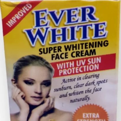 Ever White Super Whitening Face Cream is a skincare product designed to treat sun damage, dark spots, and hyperpigmentation while whitening and enhancing skin radiance. It typically features ingredients for lightening, s