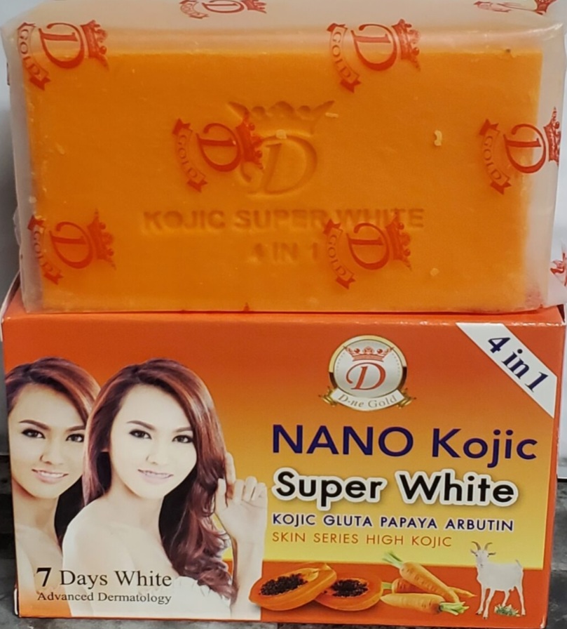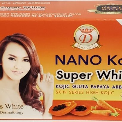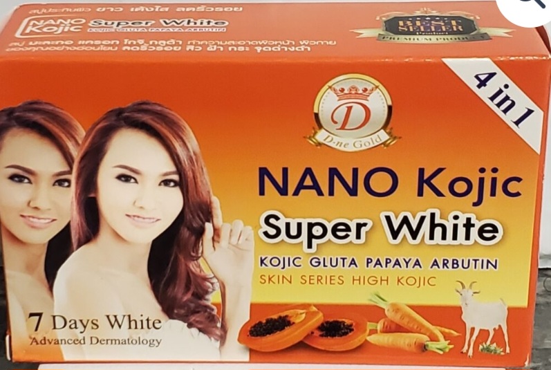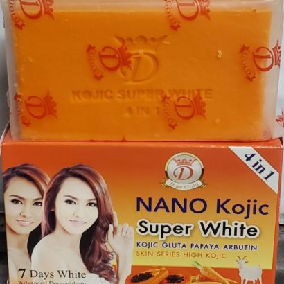 Nano Kojic Super White Gluta Papaya Arbutin Soap Nano Kojic Super White Kojic Gluta Papaya Arbutin Soap is a perfumed soap that contains Arbutin Extra, Kojic Acid Extra+, Vitamin C & E, Glutathione Plus with ever alluring mysterious and charming profile for a gentle and luxurious cleanse. It whitens in 7days. Its Made with floral essential oil, it leaves behind a flora and fruity fragrance. This soap evenly lightens your skin in just 7 days.it has a 4-in-1 feature which incle:Arbutin ExtraKojic Acid ExtraVitamin C & E Gluthathione Plus