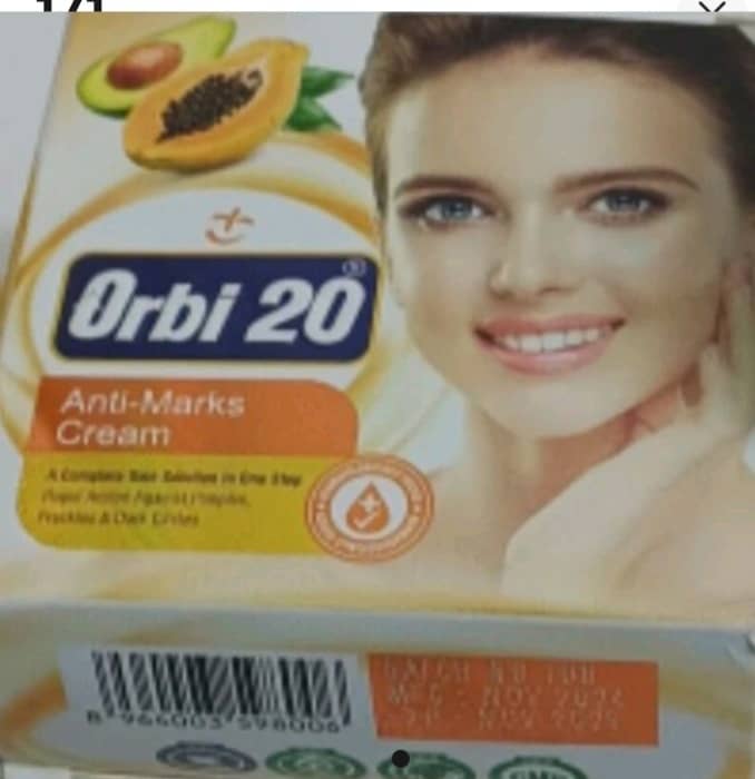 Orbi 20 face cream is described as having a fast-acting formula that is suitable for all skin types and can be used as a spot treatment or applied to problem areas.